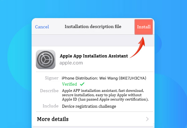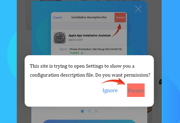 2. iPhone: After clicking to install on phone, return to the home screen. If download is complete, then click Settings >> General >> Profiles >> App >> Install.